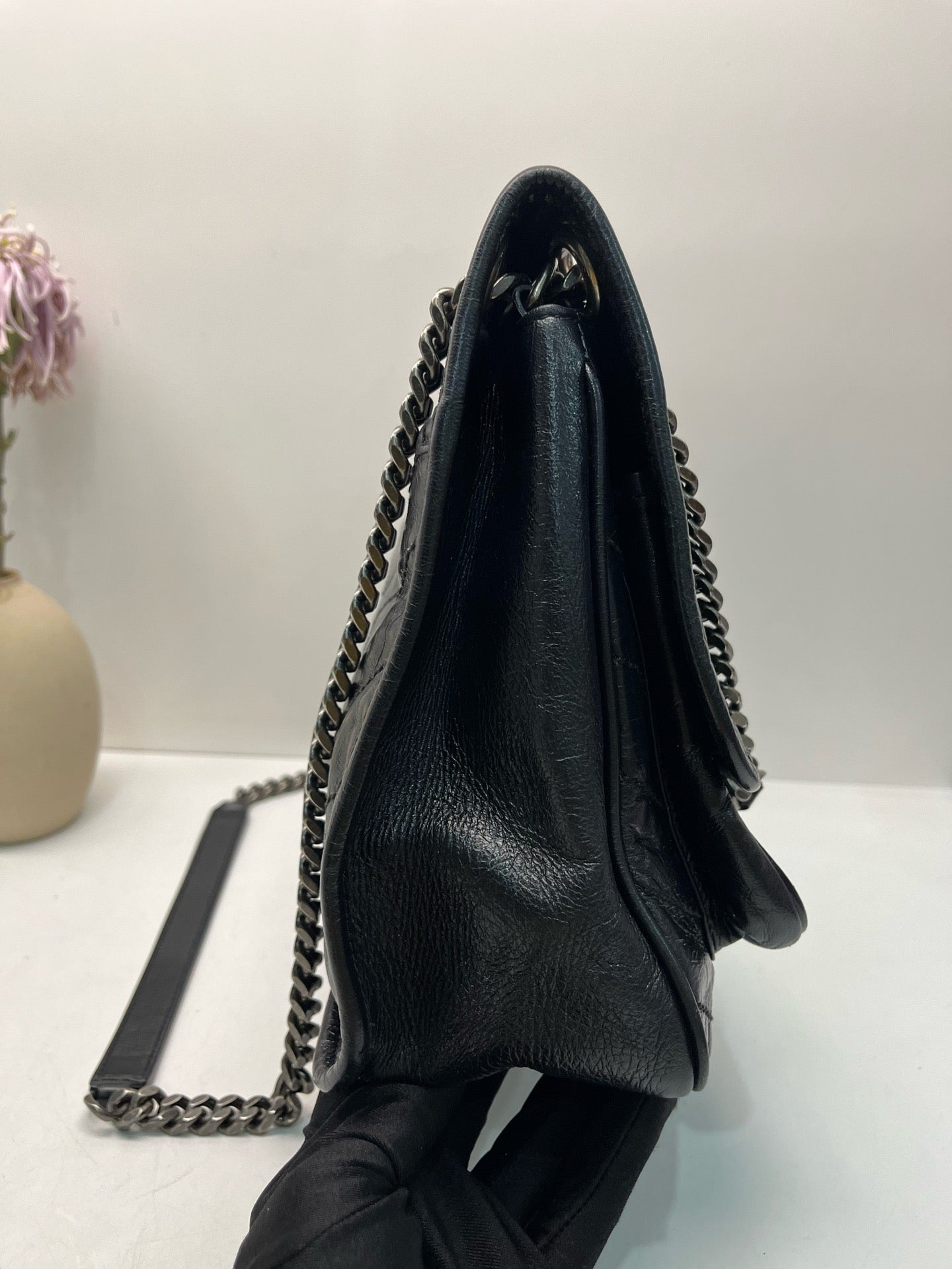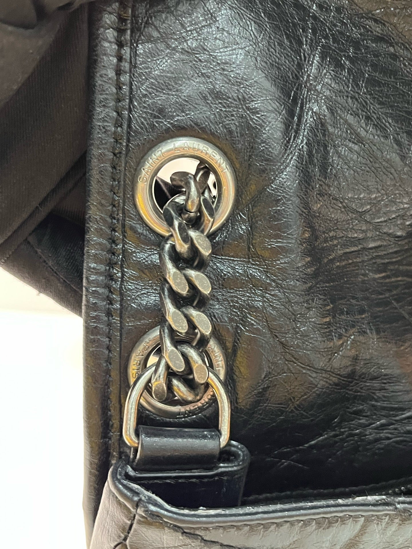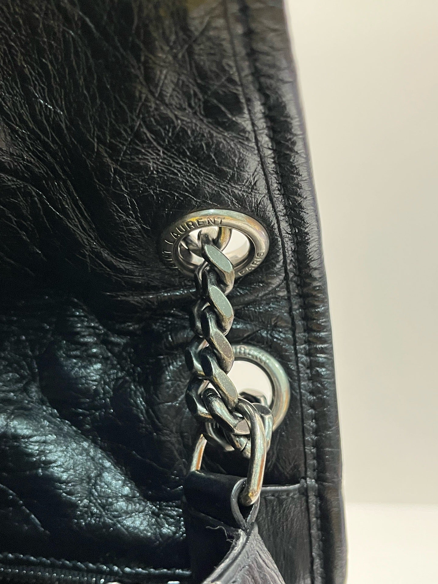 Authentic Pre-owned Saint Laurent Niki Medium Black Crinkled Leather with Silver Hardware (2021)