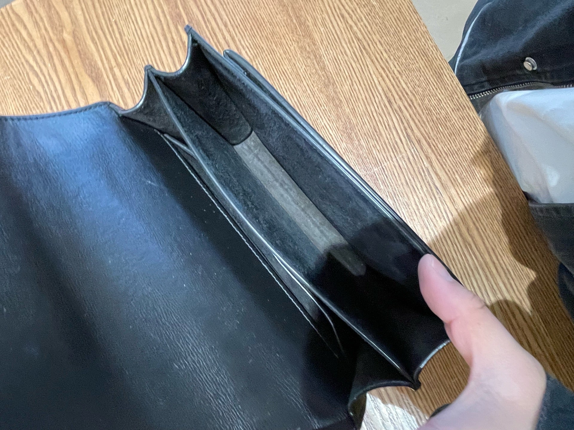 • Smooth calfskin leather exterior is sleek with light natural creasing