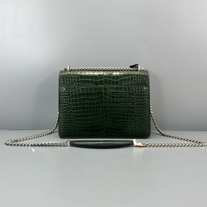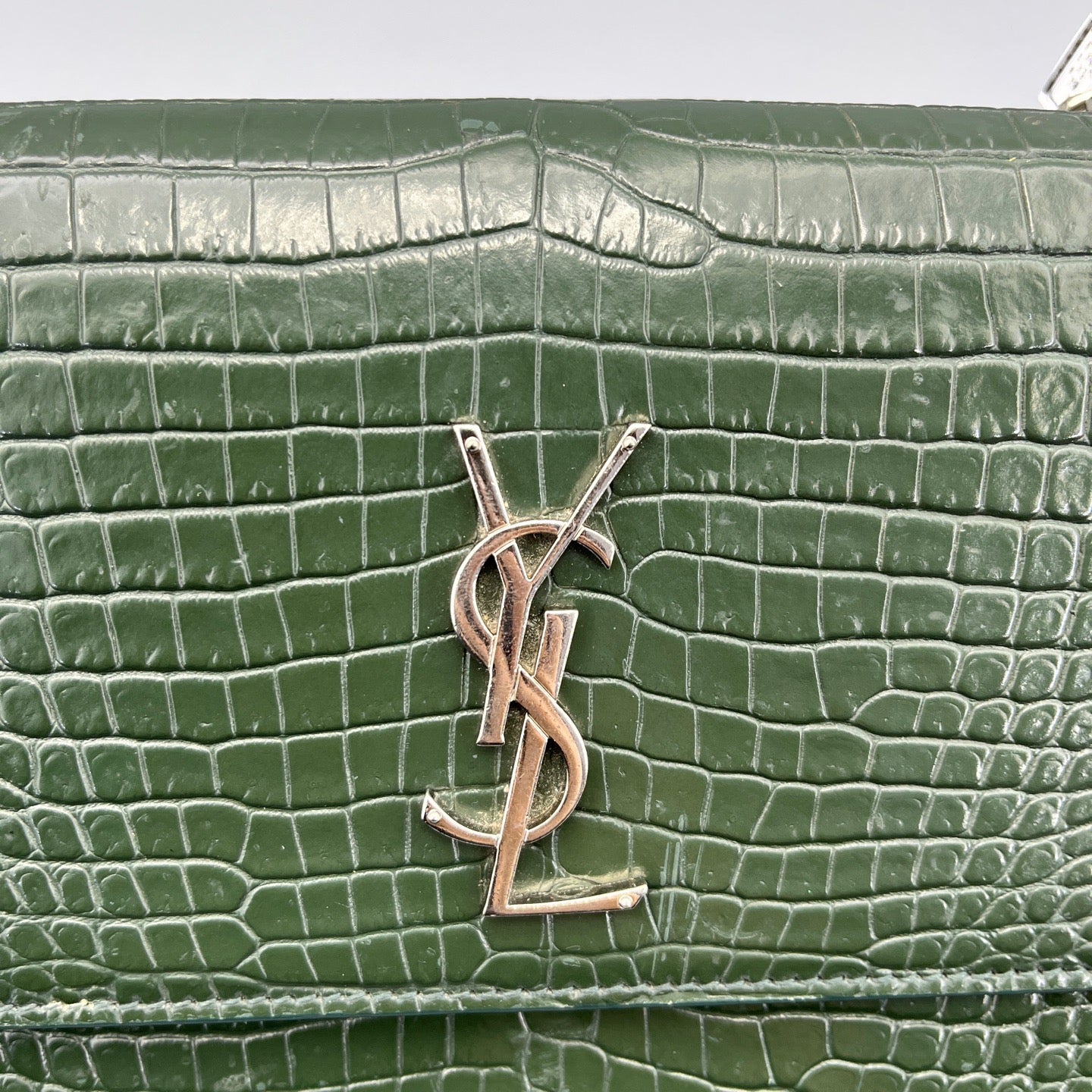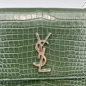 Saint Laurent Sunset Medium Green Crocodile Embossed