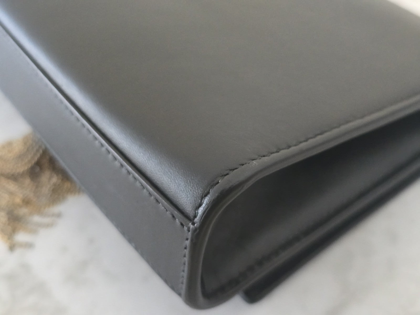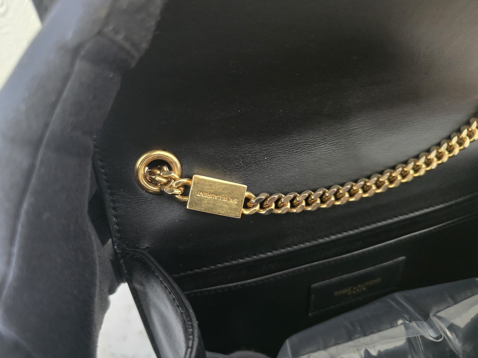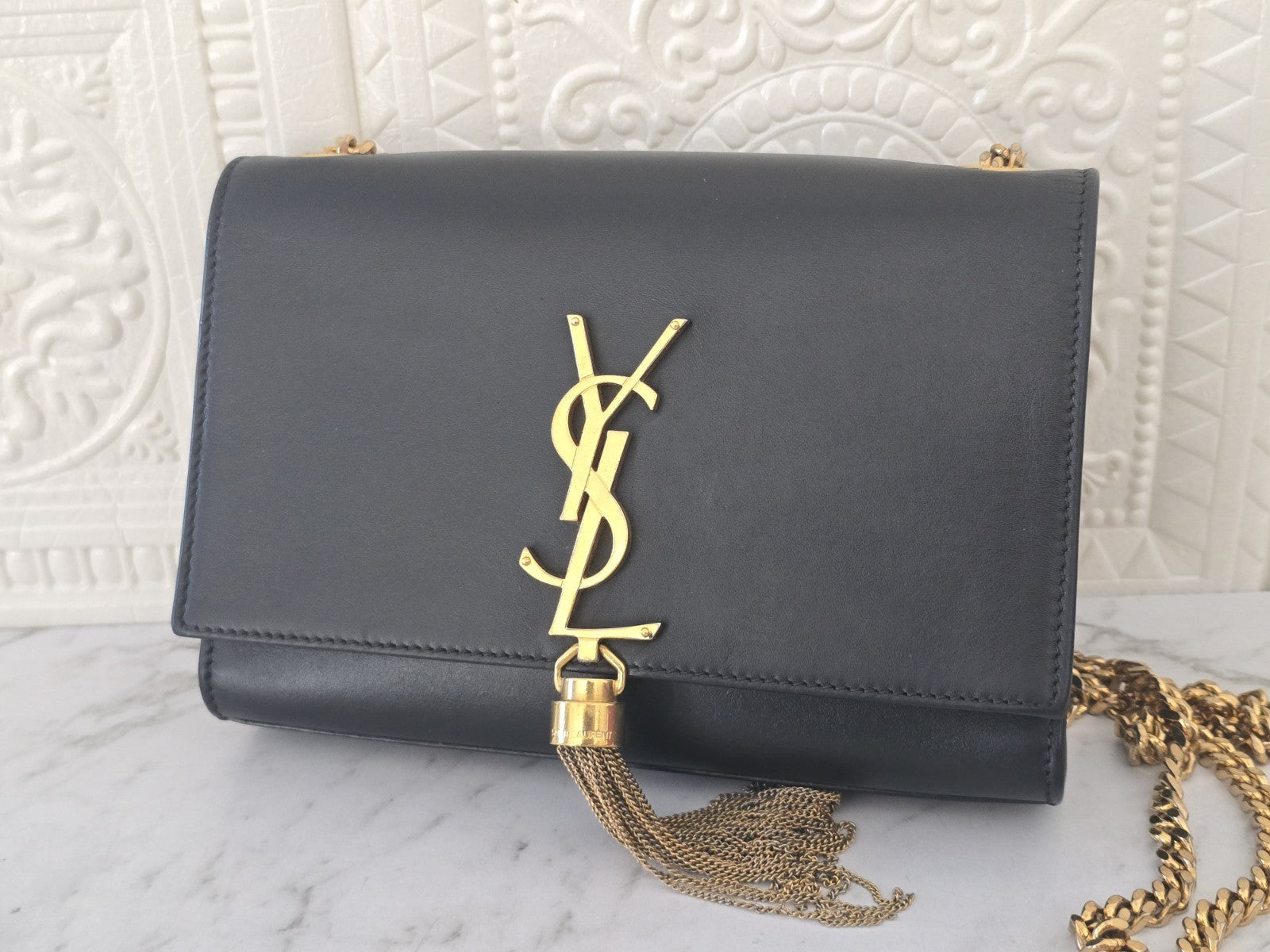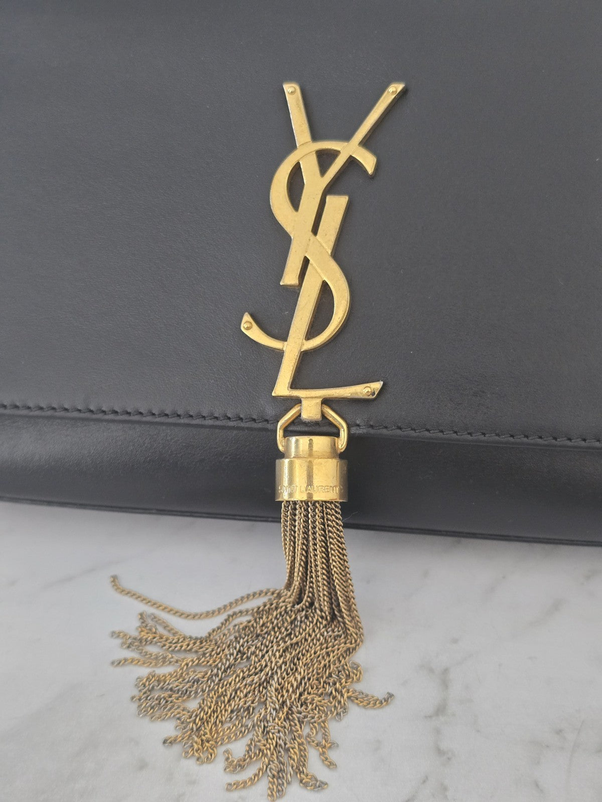 • Logo: Signature YSL Cassandre logo with chain tassel