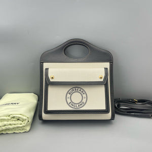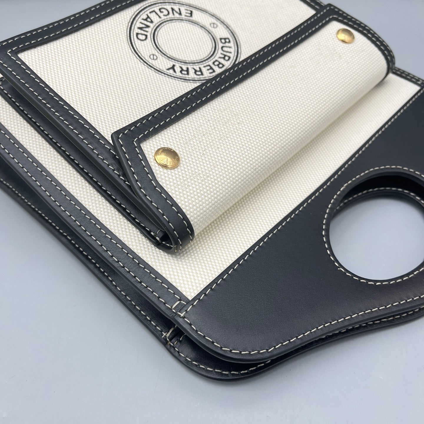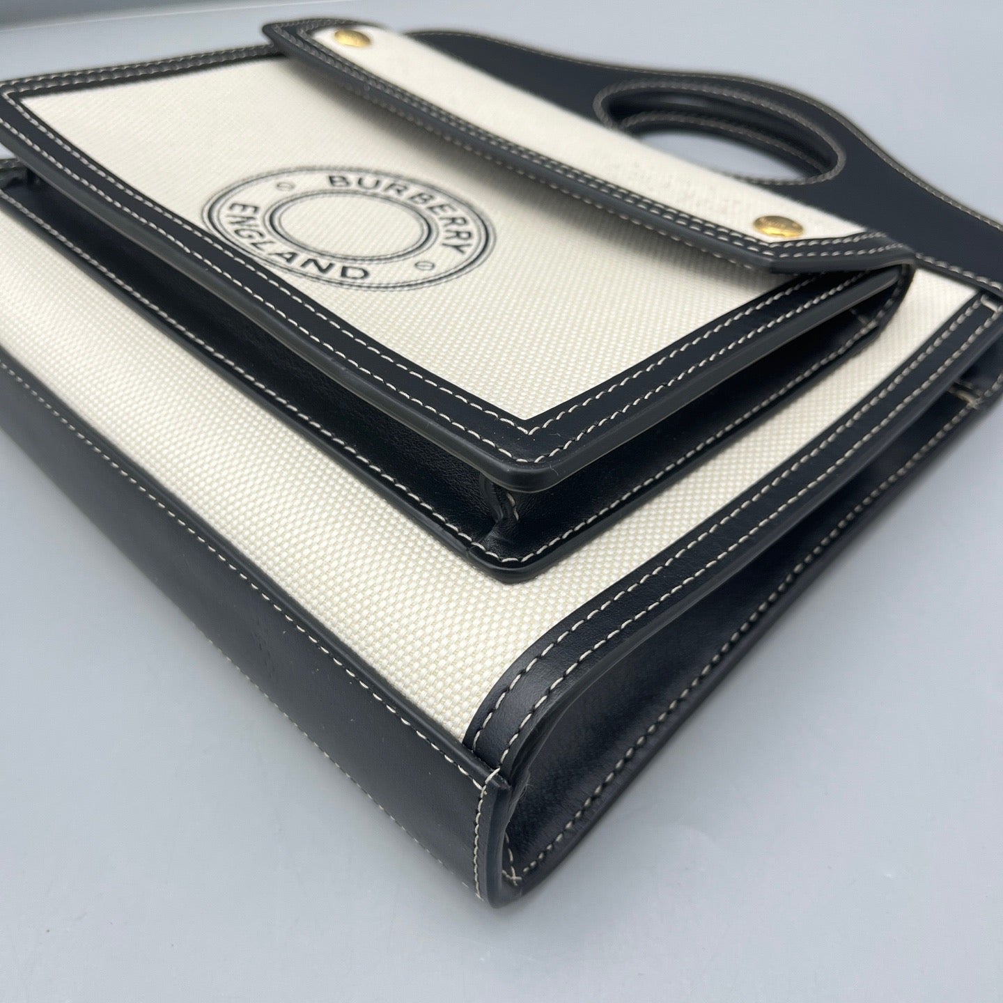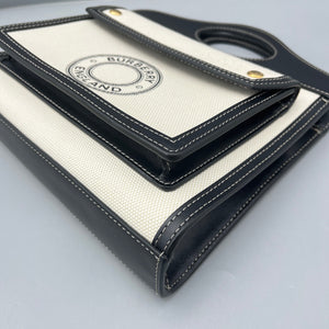 Pre-Owned Burberry Pocket Bag – Black/White Canvas & Leather (23cm W)