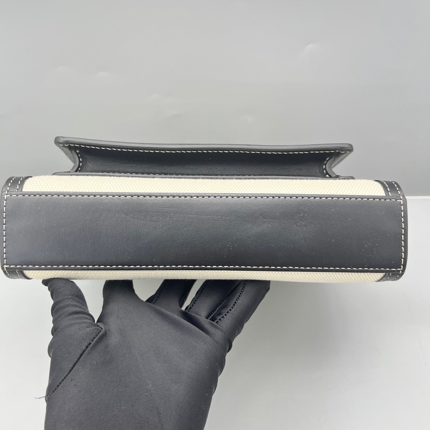 As an archive-inspired staple of Burberry’s modern luxury line, this Pocket bag blends durable canvas with sleek leather trims—embodying the brand’s iconic British aesthetic. Crafted in Italy from two-tone black/white canvas (embossed with the classic Burberry logo) and finished with polished leather edges, it features a signature top handle, detachable shoulder strap, and a front magnetic-flap pocket. The 23×26×6cm size balances compactness and daily utility: it fits essentials like a smartphone, wallet, and small cosmetics, making it ideal for workdays, casual outings, or adding a timeless touch to elevated looks. The neutral black/white palette ensures seamless pairing with a range of wardrobes.