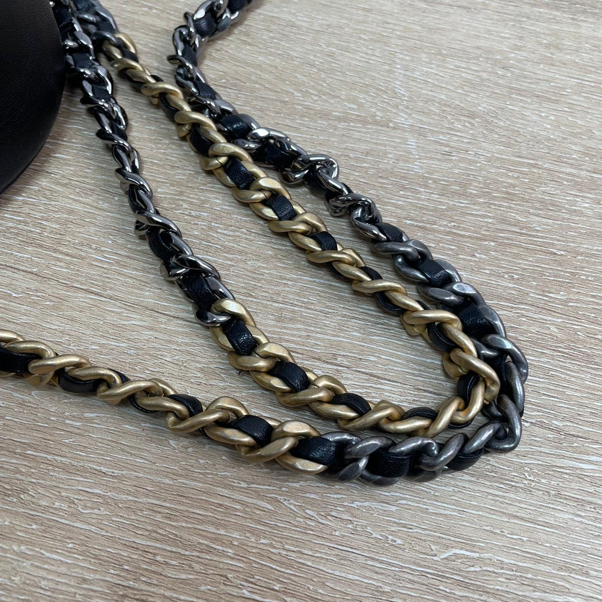 • Chain hardware shows intentional “aged” finish — part of Chanel 19 design