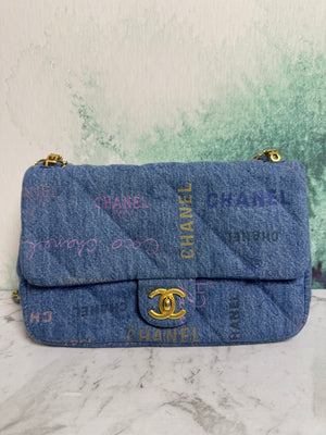 • Chanel Denim Graffiti Classic Flap Bag