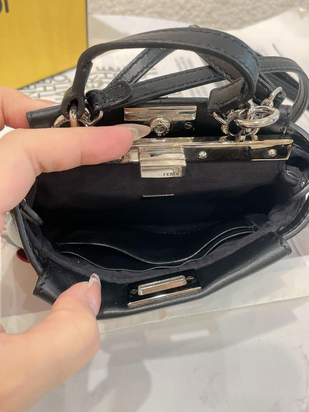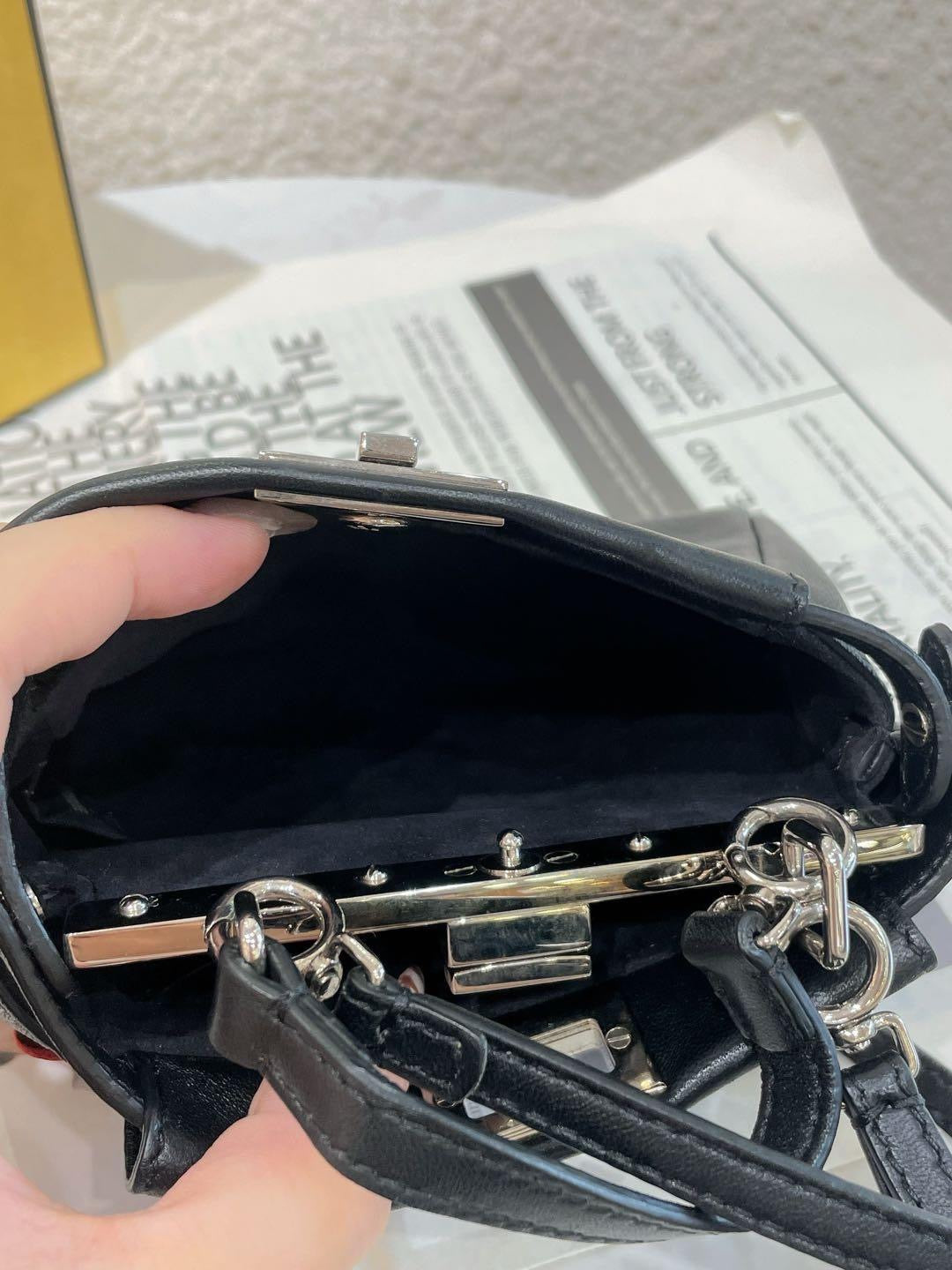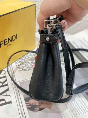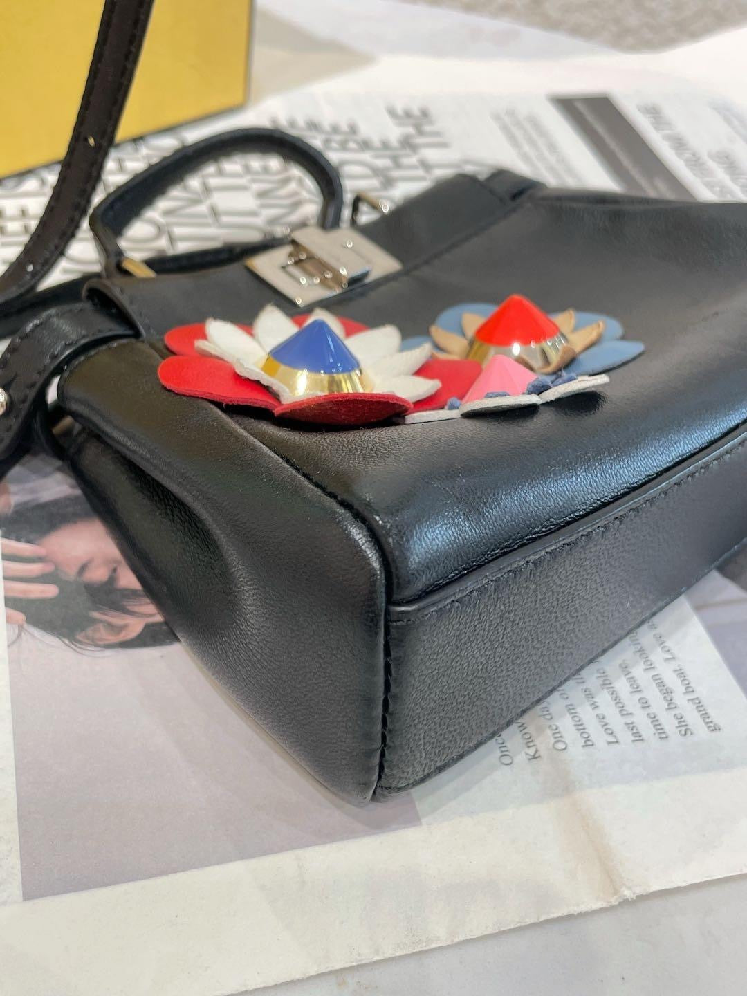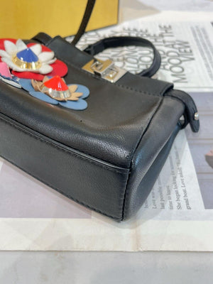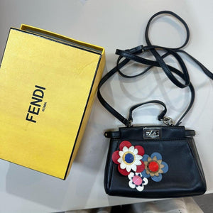 # Authentic Fendi Handbag – Black Leather with Floral Embellishment Micro