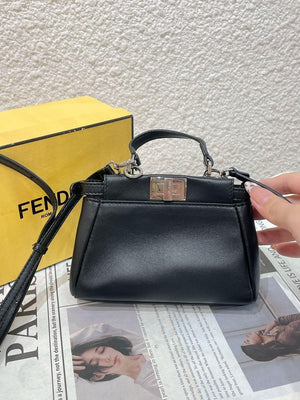 - Fendi handbag with top handle, detachable shoulder strap, and original Fendi yellow box