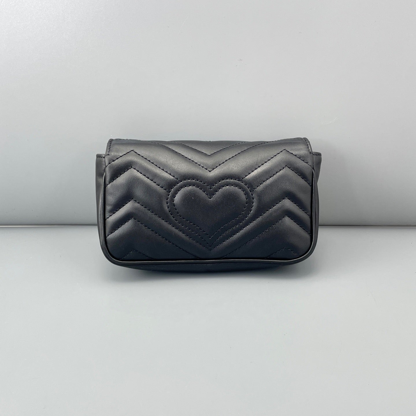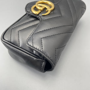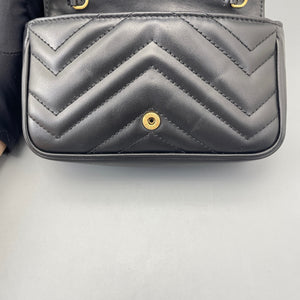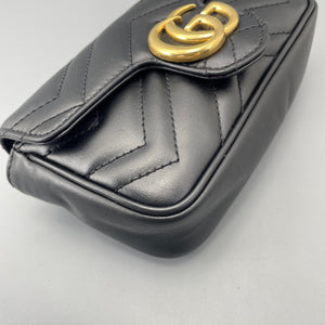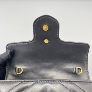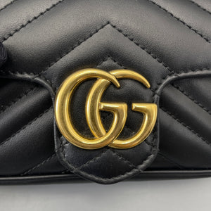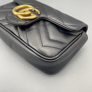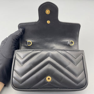 Gucci GG Marmont Super Mini Black Chevron Leather Gold-Tone Crossbody Bag