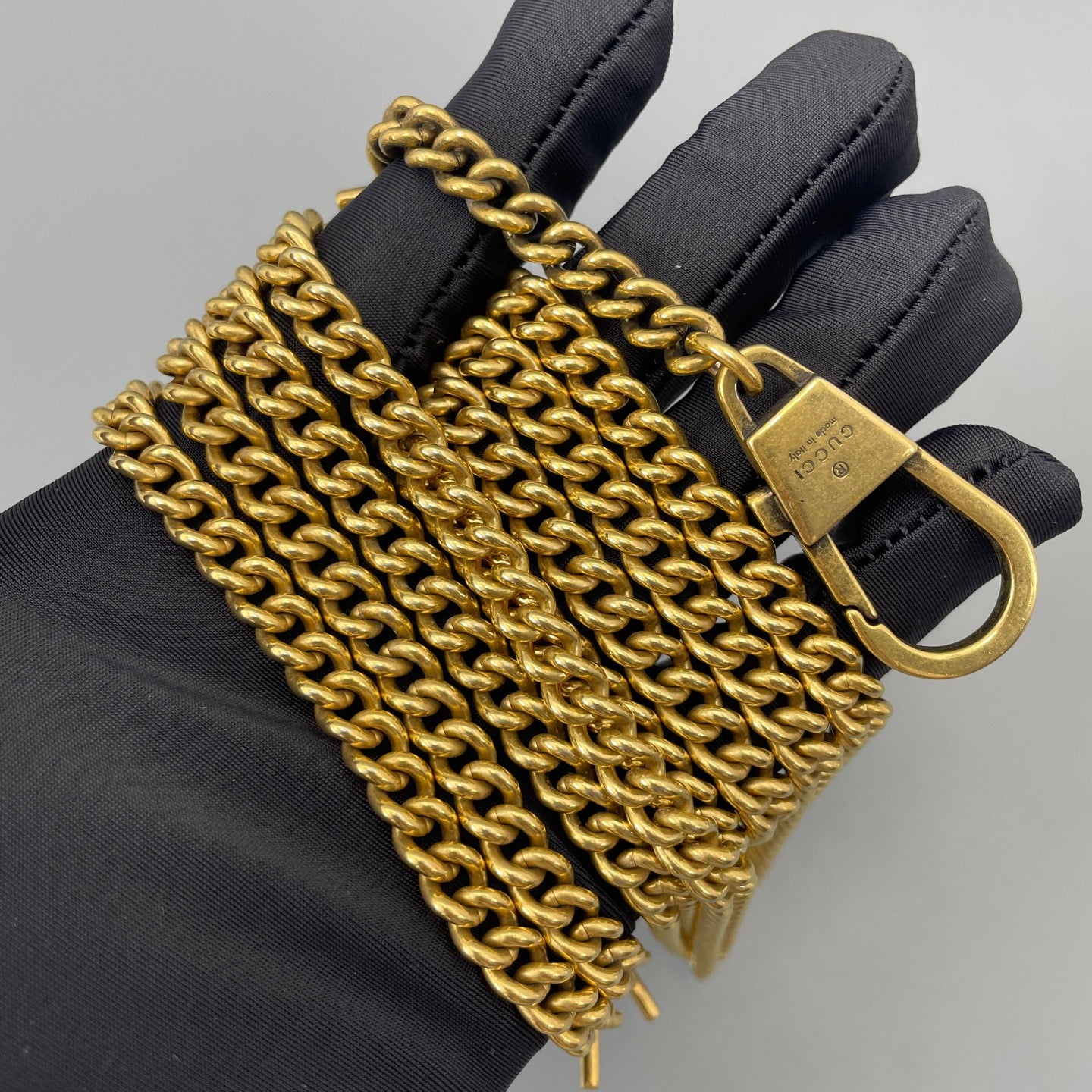 • Gold-tone hardware, GG logo and chain retain polished finish with minor surface scratches