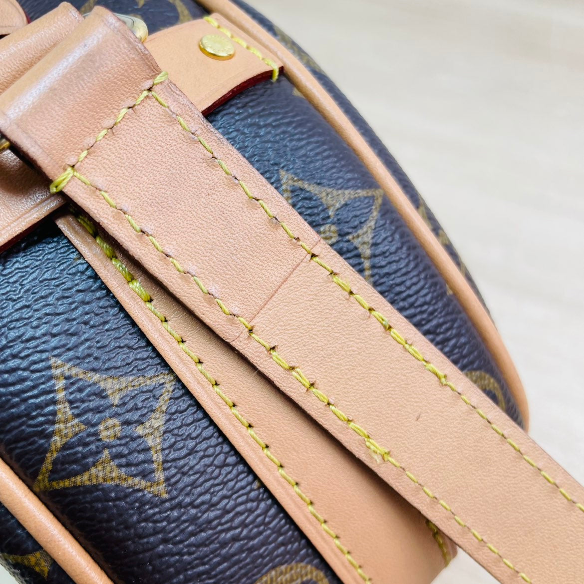 • Material: Monogram coated canvas with natural cowhide leather trim