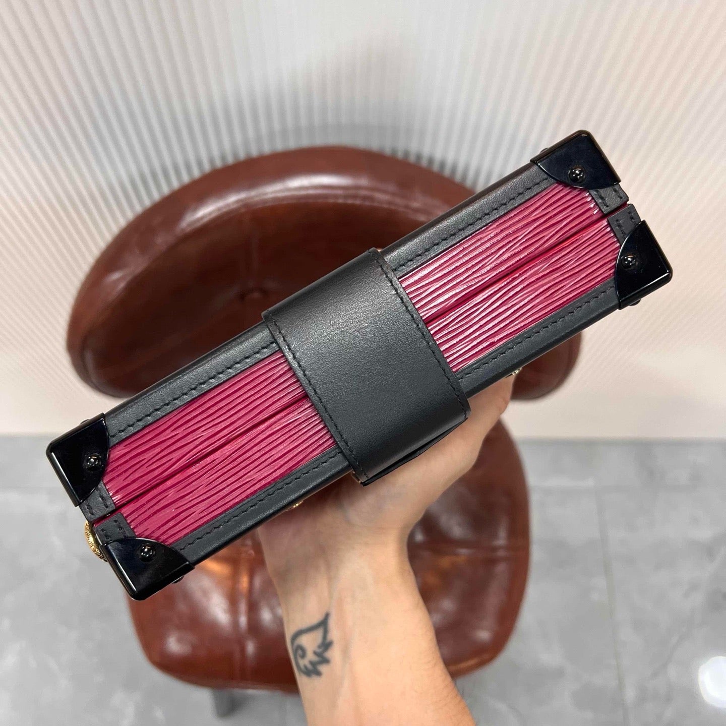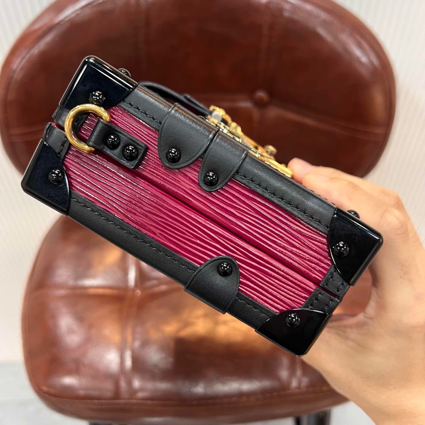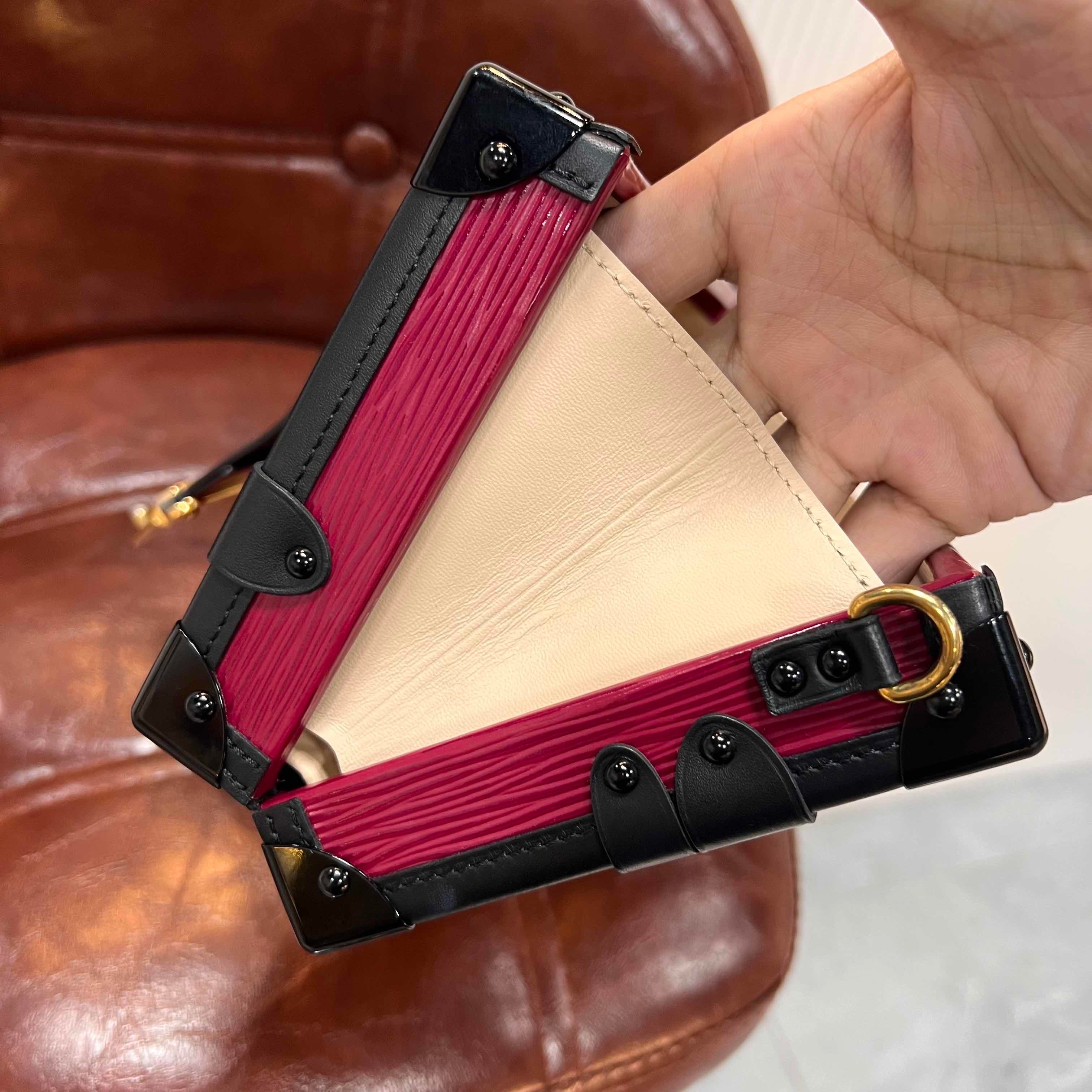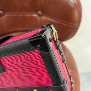 The Louis Vuitton Petit Malle is an iconic signature piece designed by Nicolas Ghesquière, paying homage to the brand’s heritage of luxury travel trunks. Crafted with vibrant red Epi leather (characterized by its textured, water-resistant finish) and polished black leather trim, this mini trunk-style bag blends vintage charm with modern sophistication — perfect for elevating evening looks or adding a statement touch to daily outfits. Its compact yet functional silhouette holds small essentials (phone, cardholder, lipstick), while showcasing LV’s legendary craftsmanship.