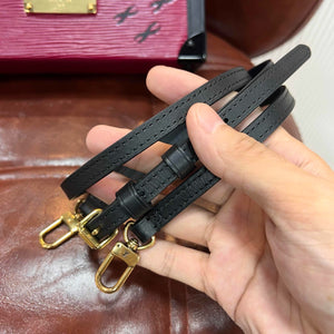 - Straps: Detachable, adjustable black leather shoulder strap (for hand, shoulder, or crossbody carry)