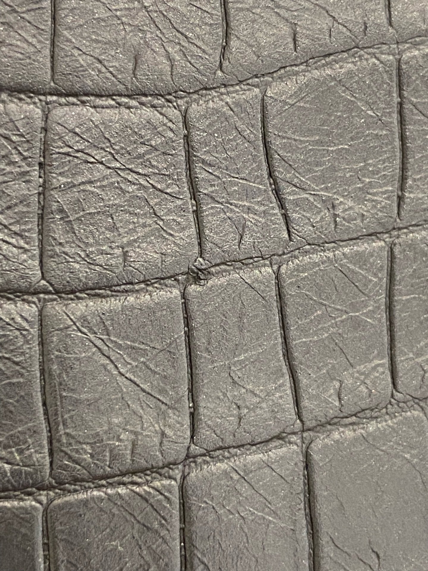 - **Black croc-embossed leather surface shows minimal light marks (no deep scratches or peeling)**, maintaining its structured shape; no signs of wear on the strap